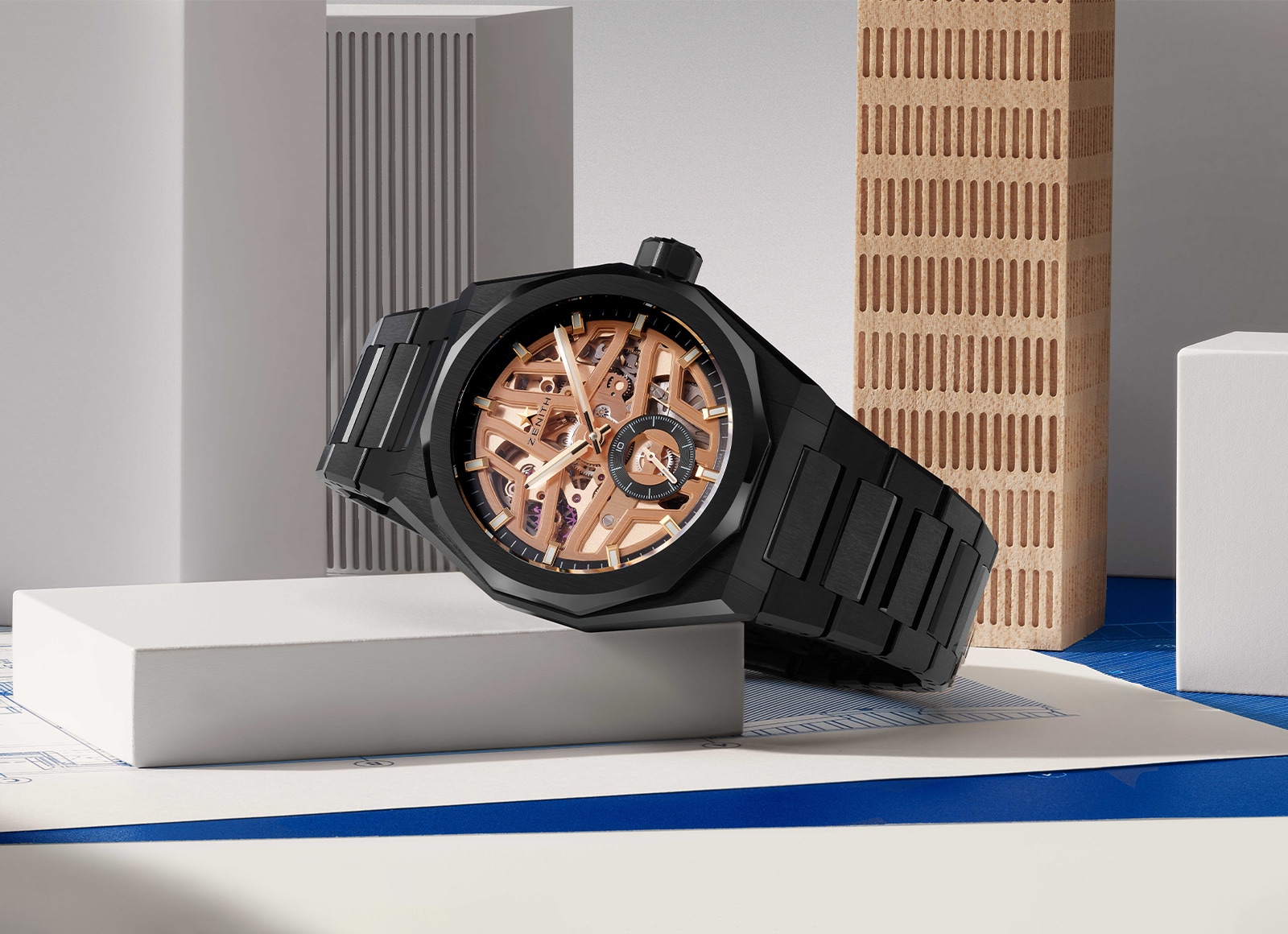 Crafted for the first time in black ceramic, the DEFY Skyline Chronograph takes on a bold, contemporary presence that evokes the contrast of light and shadow across the urban skyline. Endowed with an evolution of ZENITH’s legendary high-frequency chronograph movement, this timepiece displays 1/10th of a second, embodying the Manufacture’s dedication to precision.